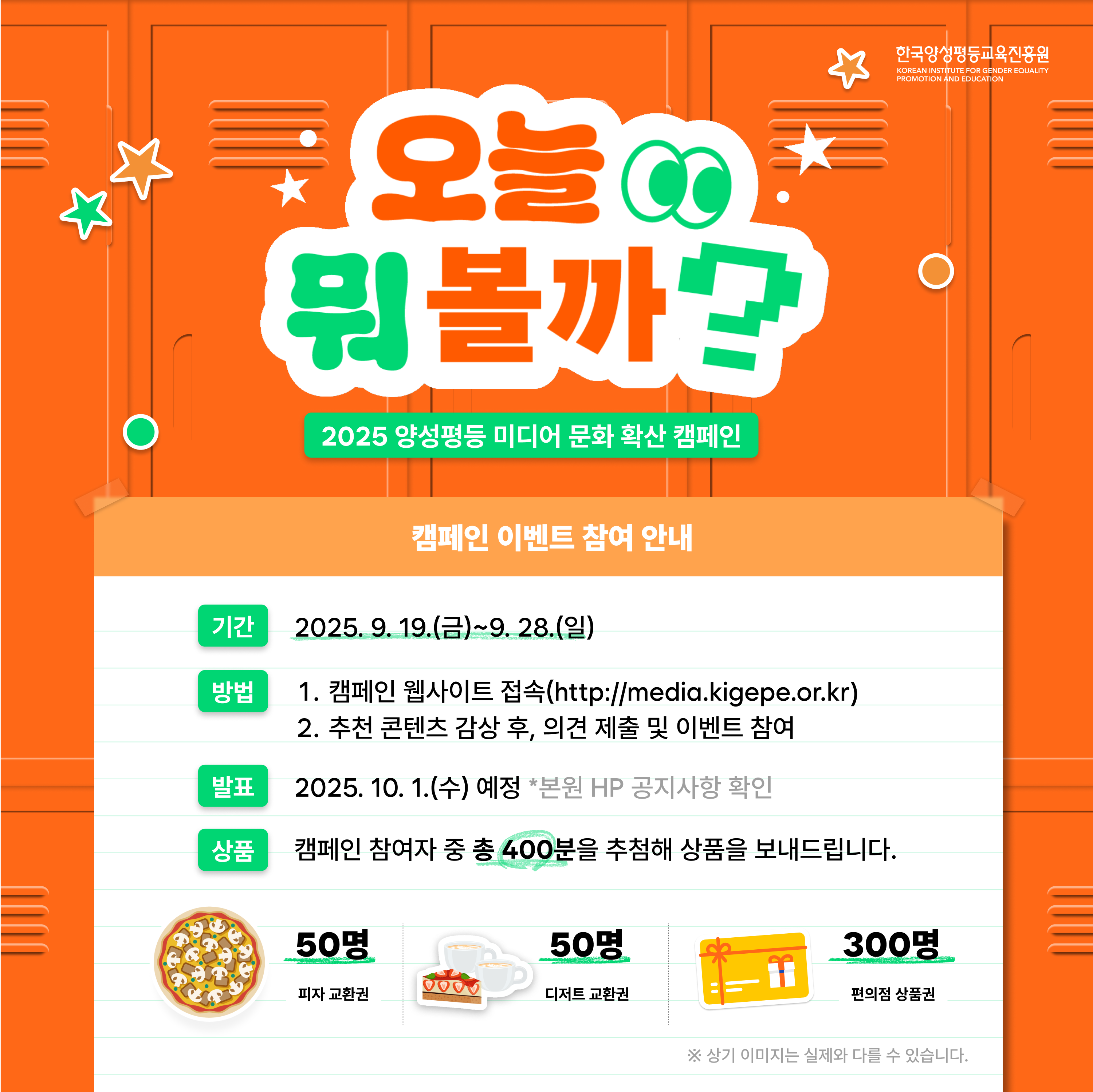 □ 상품: 피자 교환권(추첨 50명), 디저트 교환권(추첨 50명), 편의점 상품권(추첨 300명)